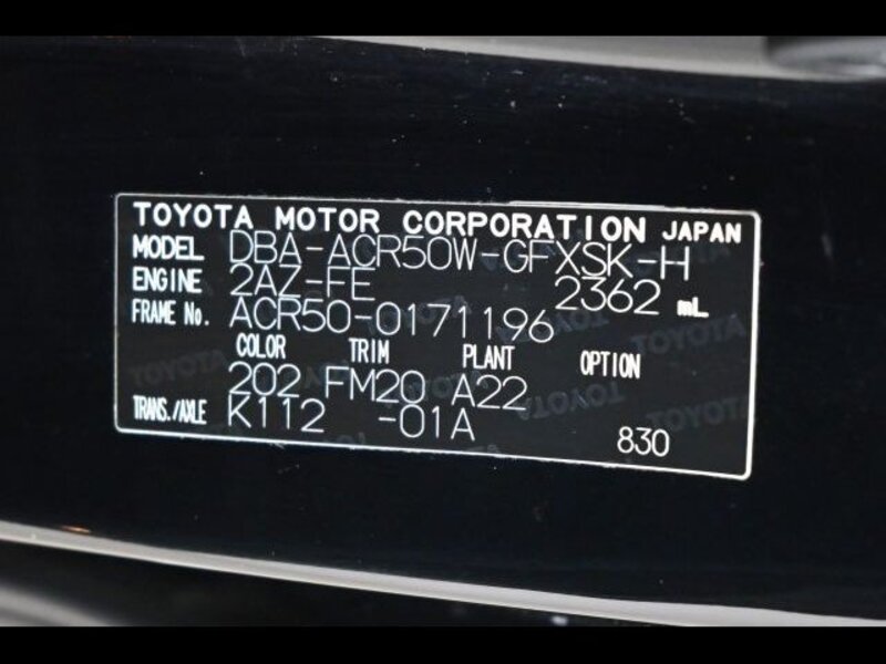 | Chassis No | ACR50W-****Full Chassis No_will be shown on Invoice |