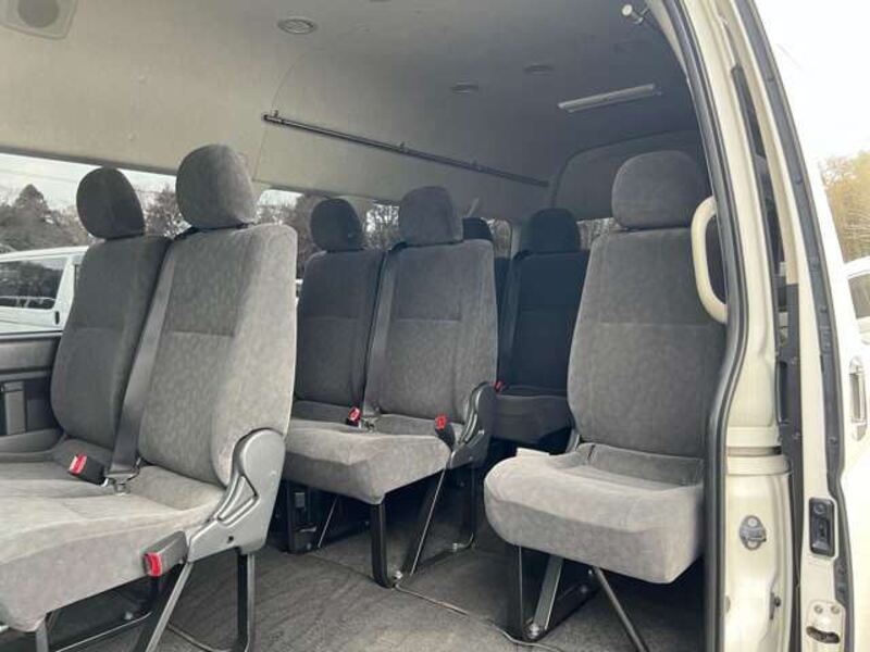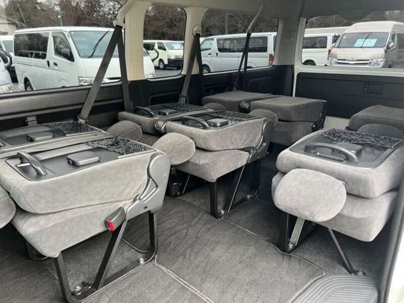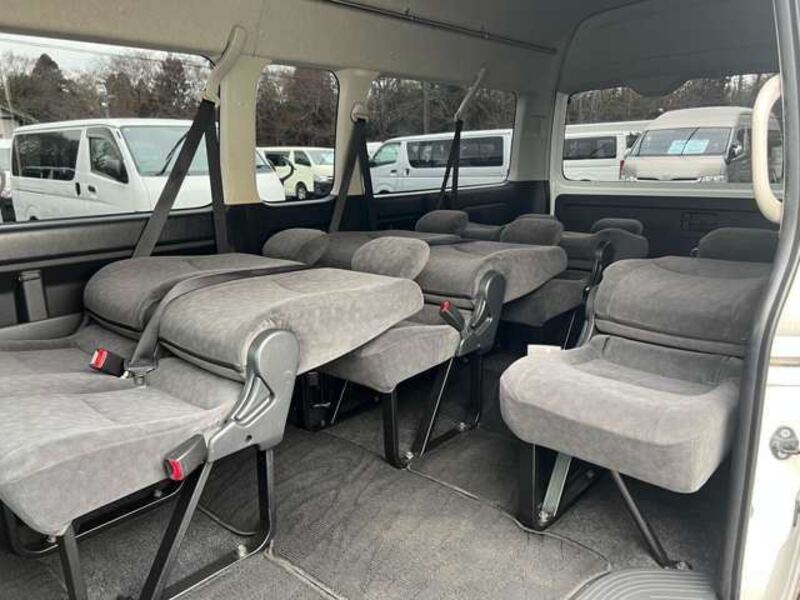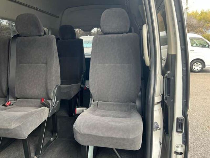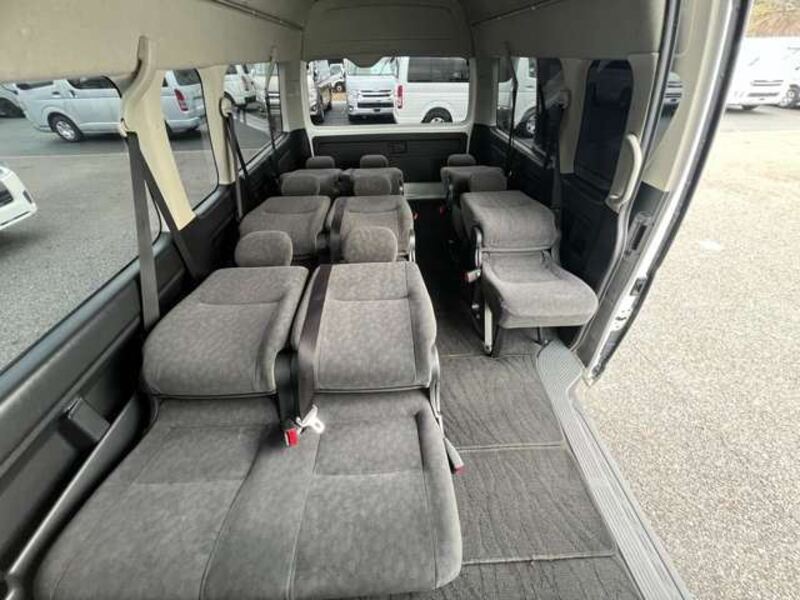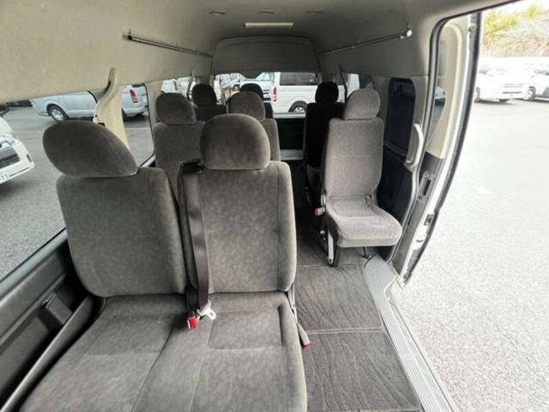 This is a 10-seat Toyota van that is perfect for trips and picking up or dropping off a large number of people. The line of sight has been raised to offer a clear view and provide comfort on long journeys. The interior window areas are also large to provide a sense of openness. The height of the interior makes it easy to get in and out of the vehicle, even to and from the last row of seats. Has a spacious luggage area owing to its seats that can be raised.