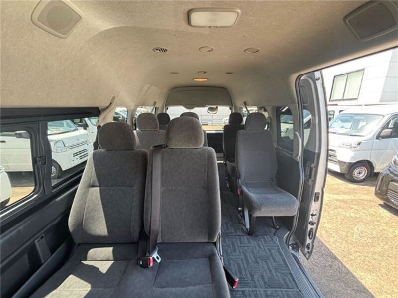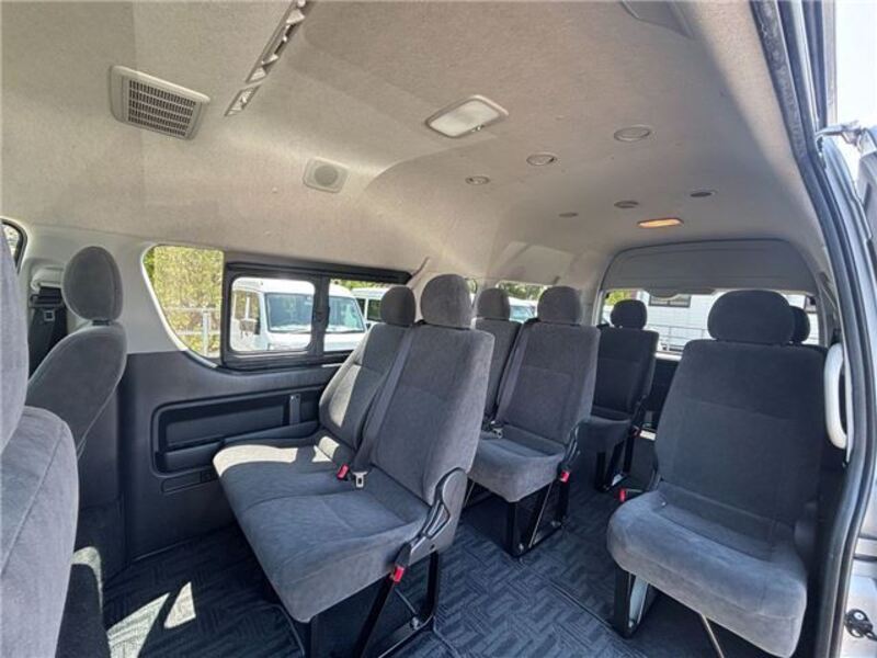 This is a 10-seat Toyota van that is perfect for trips and picking up or dropping off a large number of people. The line of sight has been raised to offer a clear view and provide comfort on long journeys. The interior window areas are also large to provide a sense of openness. The height of the interior makes it easy to get in and out of the vehicle, even to and from the last row of seats. Has a spacious luggage area owing to its seats that can be raised.