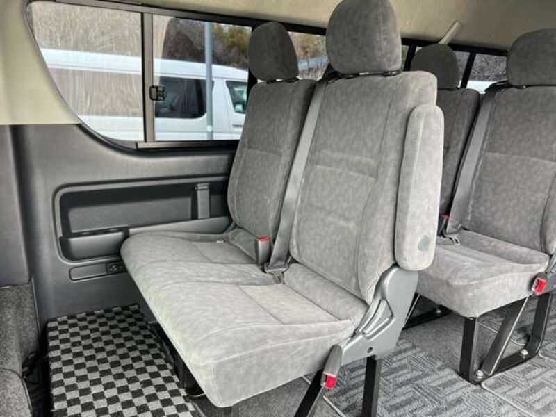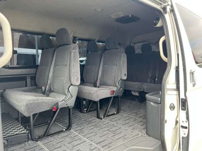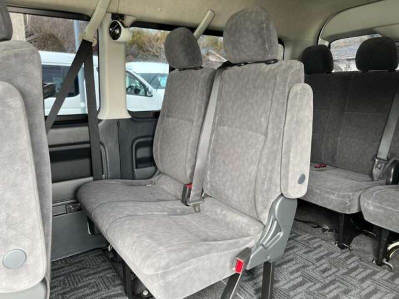 This is a 10-seat Toyota van that is perfect for trips and picking up or dropping off a large number of people. The line of sight has been raised to offer a clear view and provide comfort on long journeys. The interior window areas are also large to provide a sense of openness. The height of the interior makes it easy to get in and out of the vehicle, even to and from the last row of seats. Has a spacious luggage area owing to its seats that can be raised.