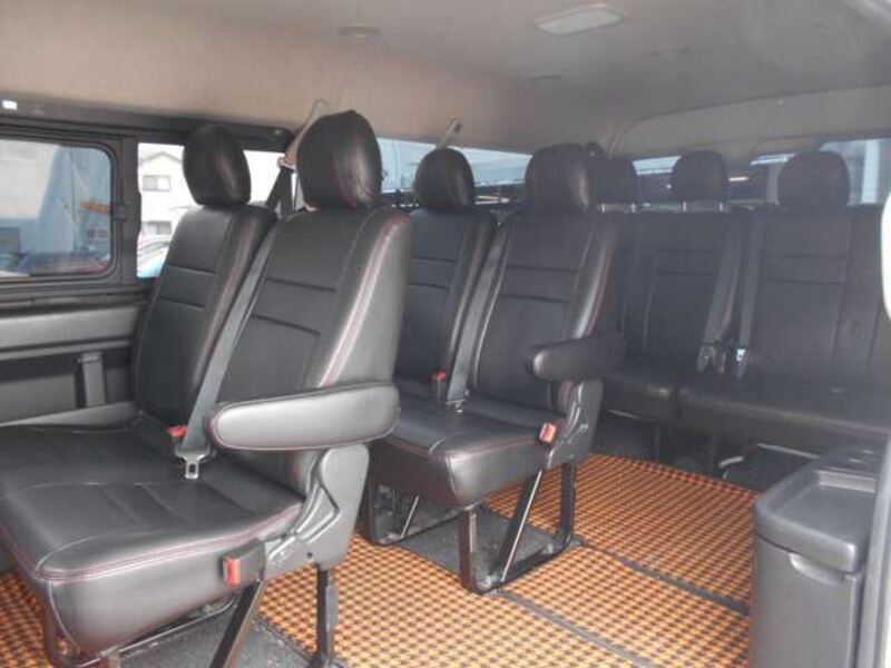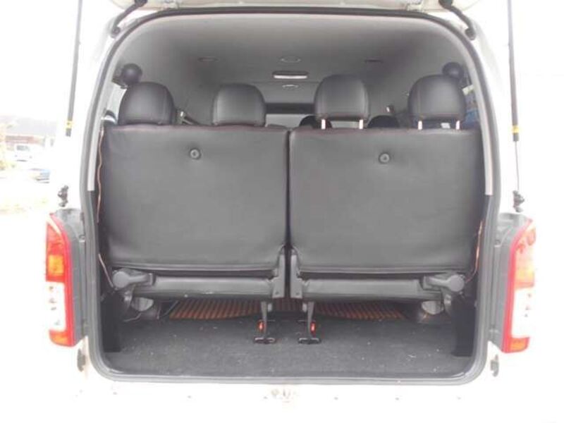 This is a 10-seat Toyota van that is perfect for trips and picking up or dropping off a large number of people. The line of sight has been raised to offer a clear view and provide comfort on long journeys. The interior window areas are also large to provide a sense of openness. The height of the interior makes it easy to get in and out of the vehicle, even to and from the last row of seats. Has a spacious luggage area owing to its seats that can be raised.