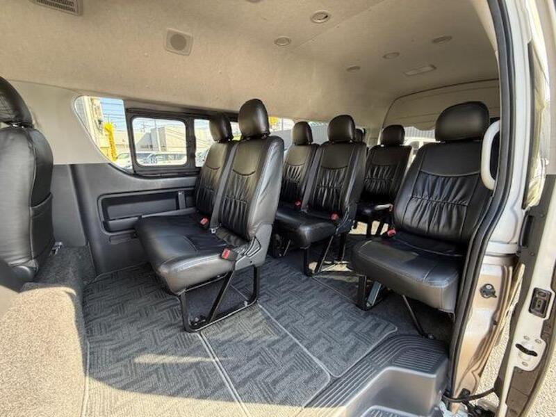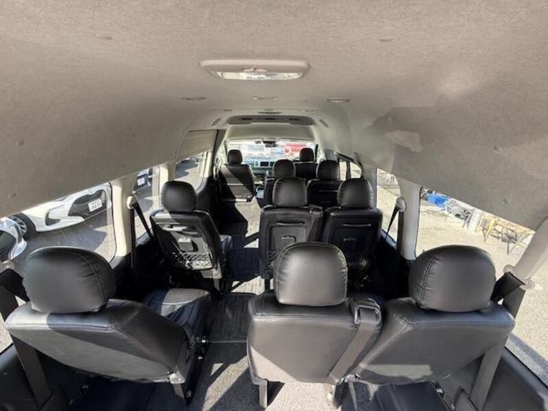 This is a 10-seat Toyota van that is perfect for trips and picking up or dropping off a large number of people. The line of sight has been raised to offer a clear view and provide comfort on long journeys. The interior window areas are also large to provide a sense of openness. The height of the interior makes it easy to get in and out of the vehicle, even to and from the last row of seats. Has a spacious luggage area owing to its seats that can be raised.