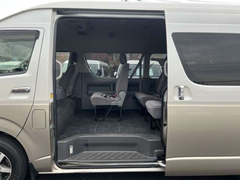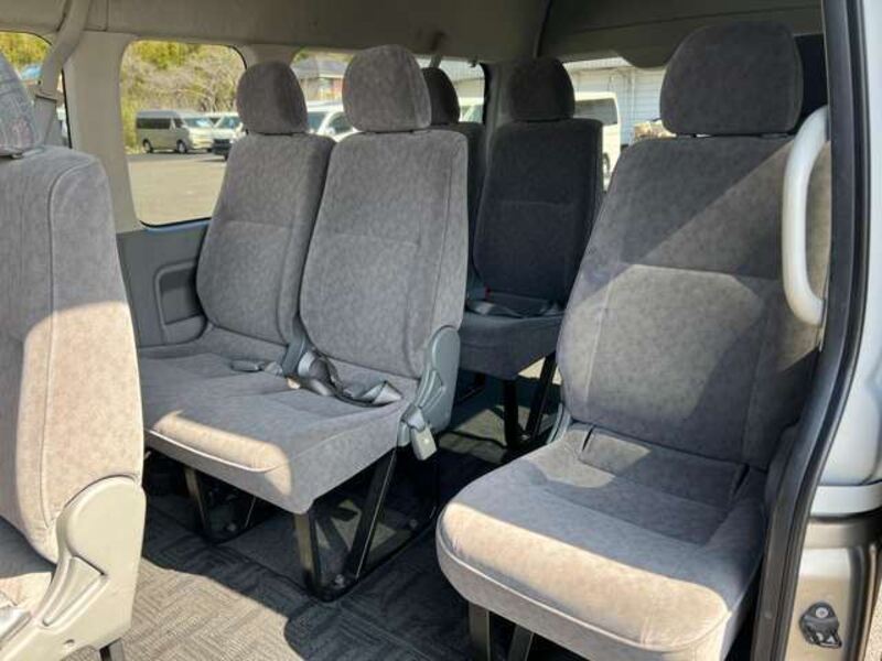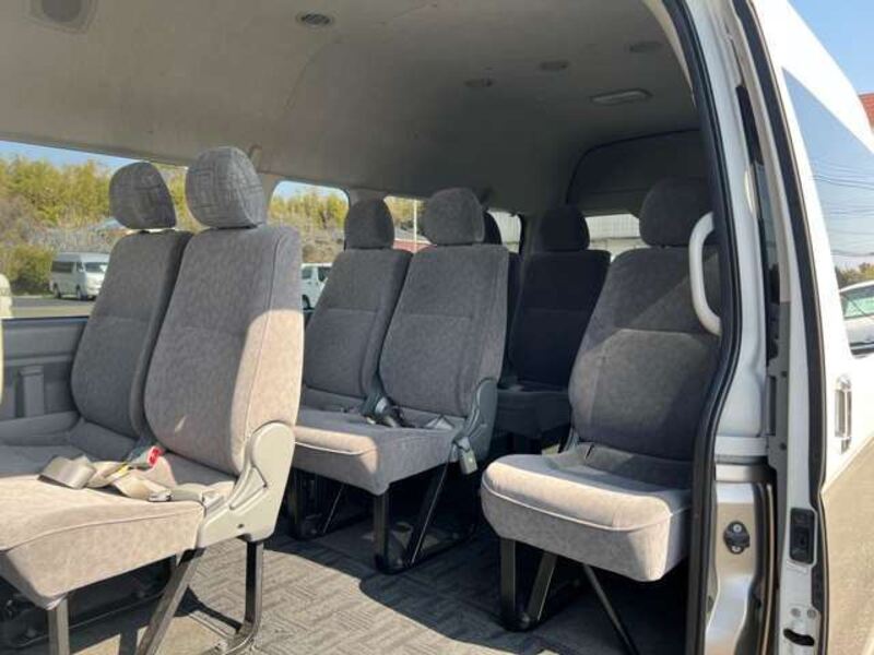This is a 10-seat Toyota van that is perfect for trips and picking up or dropping off a large number of people. The line of sight has been raised to offer a clear view and provide comfort on long journeys. The interior window areas are also large to provide a sense of openness. The height of the interior makes it easy to get in and out of the vehicle, even to and from the last row of seats. Has a spacious luggage area owing to its seats that can be raised.