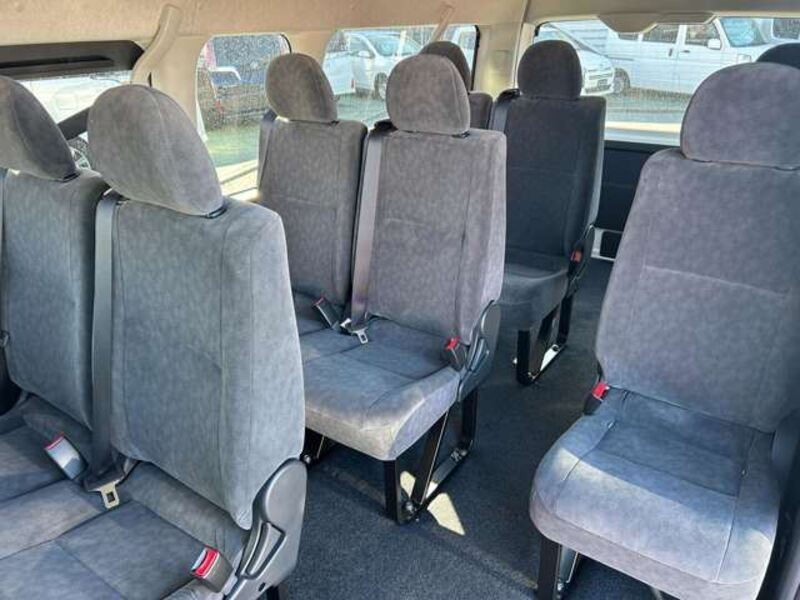 This is a 10-seat Toyota van that is perfect for trips and picking up or dropping off a large number of people. The line of sight has been raised to offer a clear view and provide comfort on long journeys. The interior window areas are also large to provide a sense of openness. The height of the interior makes it easy to get in and out of the vehicle, even to and from the last row of seats. Has a spacious luggage area owing to its seats that can be raised.