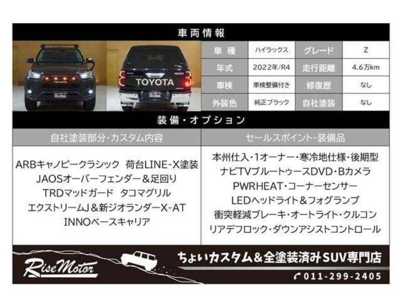 Cette 2022 TOYOTA HILUX avec le code de modèle GUN125 est équipée d'un moteur de 2,400cc à Diesel et a un kilométrage total de 46,200km.