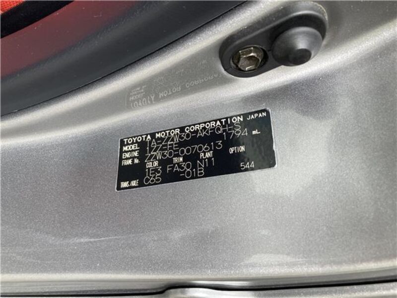 Cette 2004 TOYOTA MR-S avec le code de modèle ZZW30 est équipée d'un moteur de 1,800cc à Essence et a un kilométrage total de 131,000km.