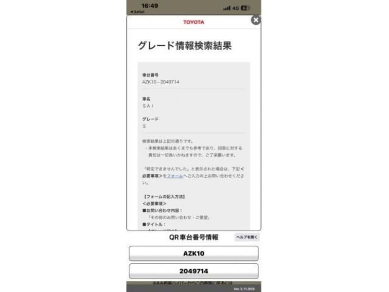 Cette 2011 TOYOTA SAI avec le code de modèle AZK10 et a un kilométrage total de 56,433km.