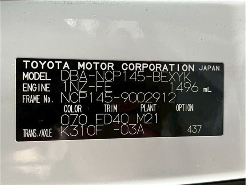 | Chassis No | NCP145-****Full Chassis No_will be shown on Invoice |