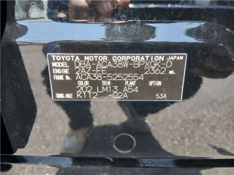 Cette 2013 TOYOTA VANGUARD avec le code de modèle ACA38W est équipée d'un moteur de 2,400cc à Essence et a un kilométrage total de 102,000km.