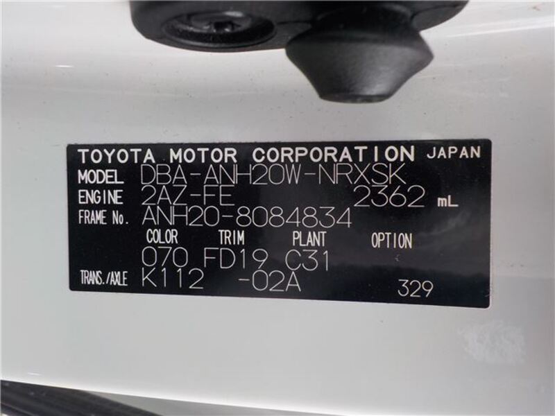| Chassis No | ANH20-8****Full Chassis No_will be shown on Invoice |