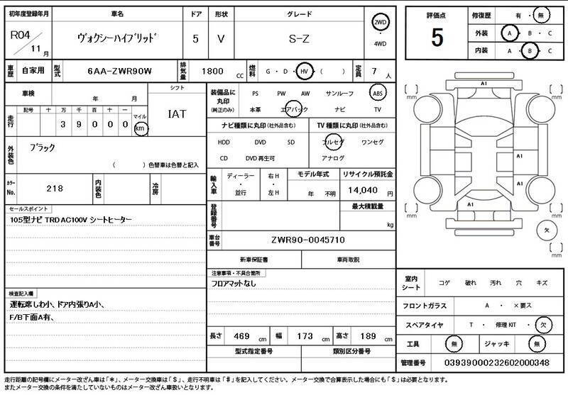 Cette 2022 TOYOTA VOXY avec le code de modèle ZWR90W est équipée d'un moteur de 1,800cc à Électrique et a un kilométrage total de 39,000km.