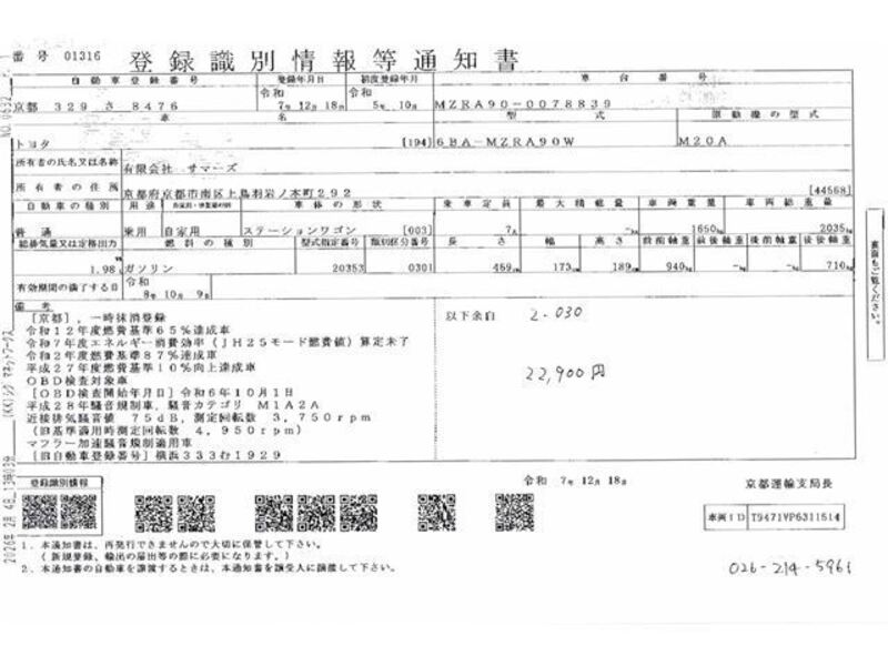 | Chassis No | MZRA90-****Full Chassis No_will be shown on Invoice |