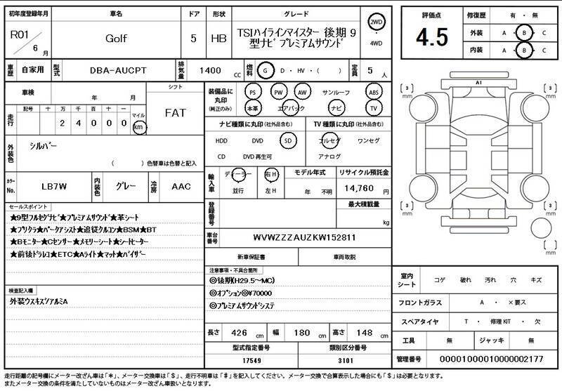 Cette 2019 VOLKSWAGEN GOLF avec le code de modèle AUCPT est équipée d'un moteur de 1,400cc à Essence et a un kilométrage total de 24,000km.