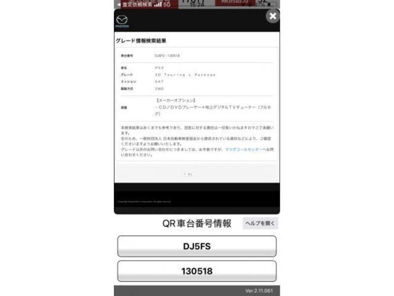 | Type de carrosserie | -- | Numéro de châssis | DEJFS-1**** | Code de modèle | DEJFS | Modèle de moteur | -- | Volant | Droite |