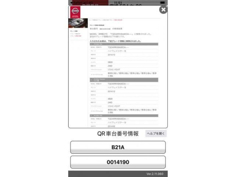 | Type de carrosserie | Van | Numéro de châssis | B21A-00**** | Code de modèle | B21A | Modèle de moteur | -- | Volant | -- |