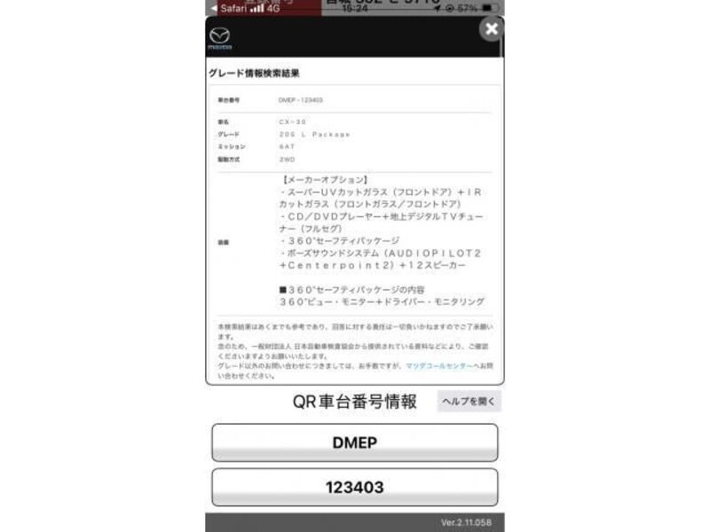 | Type de carrosserie | SUV | Numéro de châssis | DMEP-11**** | Code de modèle | DMEP | Modèle de moteur | -- | Volant | Droite |