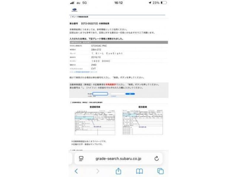 | Type de carrosserie | SUV | Numéro de châssis | 006010**** | Code de modèle | DBA-VM4 | Modèle de moteur | -- | Volant | Droite |