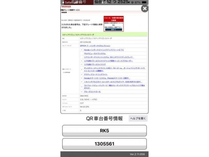 | Type de carrosserie | Van | Numéro de châssis | RK5-130**** | Code de modèle | RK5 | Modèle de moteur | -- | Volant | -- |