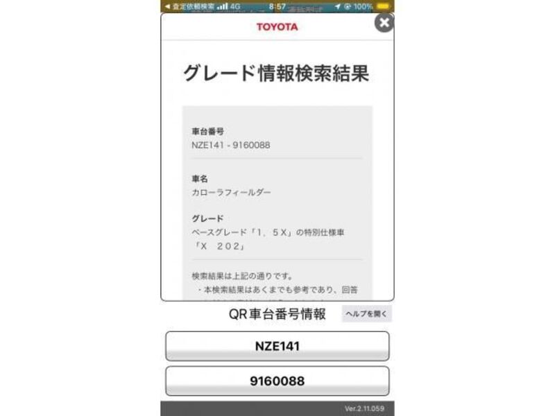 | Type de carrosserie | -- | Numéro de châssis | NSP170-**** | Code de modèle | NSP170G | Modèle de moteur | -- | Volant | -- |