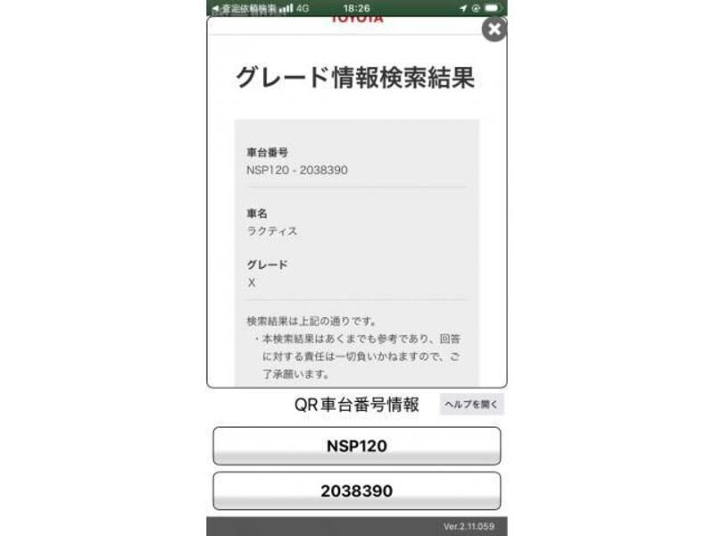 | Type de carrosserie | Van | Numéro de châssis | NSP120-**** | Code de modèle | NSP120 | Modèle de moteur | -- | Volant | -- |
