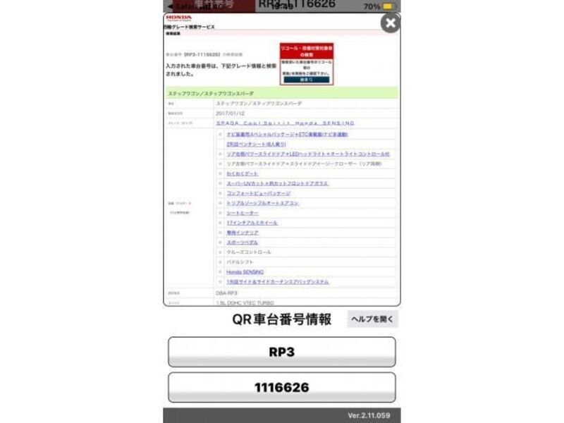 | Type de carrosserie | Van | Numéro de châssis | RP3-111**** | Code de modèle | RP3 | Modèle de moteur | -- | Volant | -- |