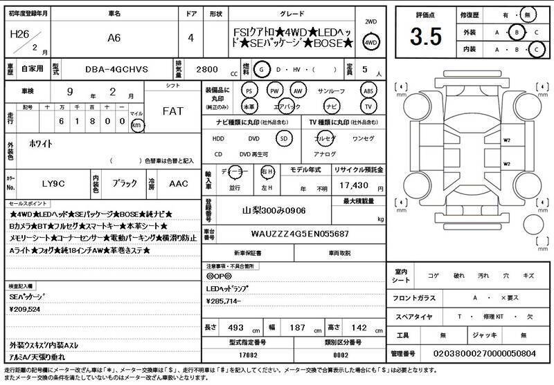 hii 2014 AUDI A6 na nambari ya mfano 4GCHVS imewekwa na injini ya Petroli 2,800cc na ina jumla ya mileage ya 62,000km.