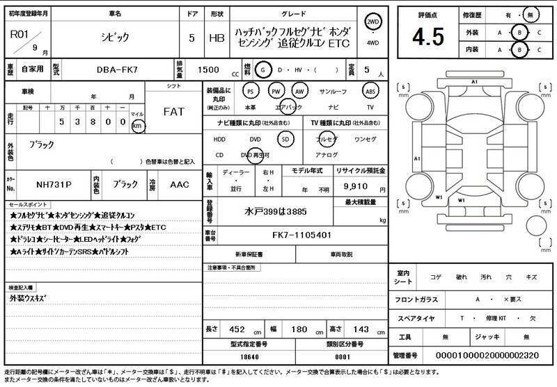 2019 huko HONDA CIVIC FK7