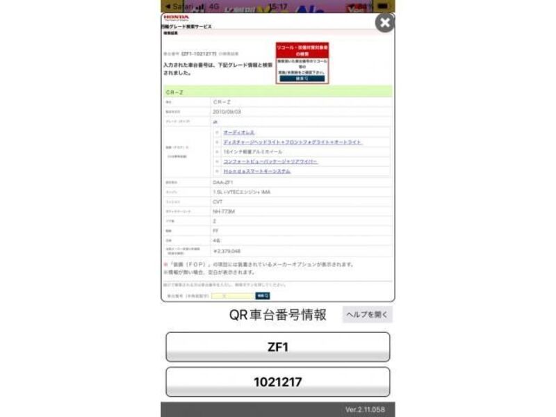 2011 huko HONDA CR-Z ZF1