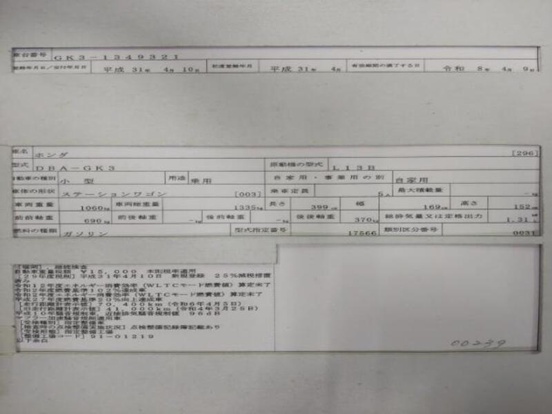2019 huko HONDA FIT DBA-GK3