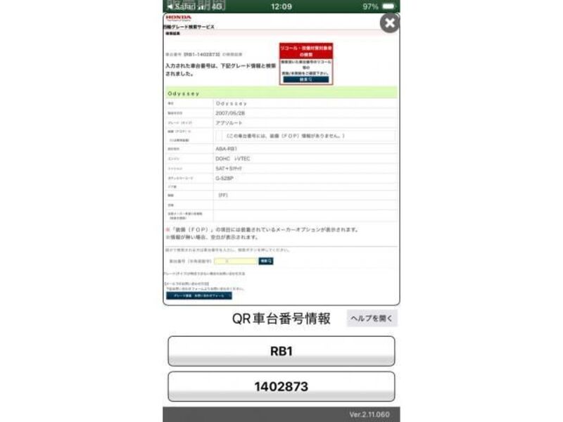 2007 huko HONDA ODYSSEY RB1