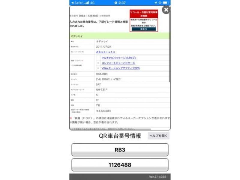 2011 huko HONDA ODYSSEY RB3