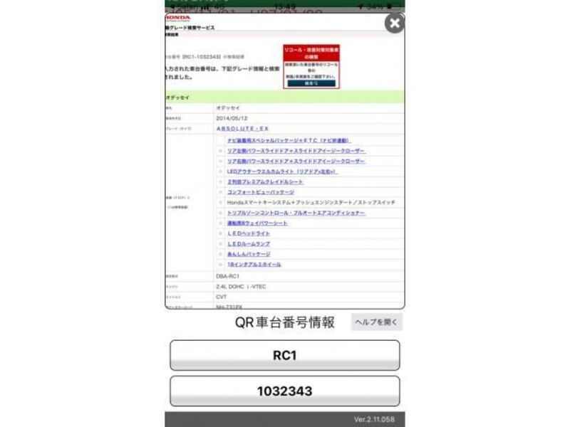 2014 huko HONDA ODYSSEY RC1