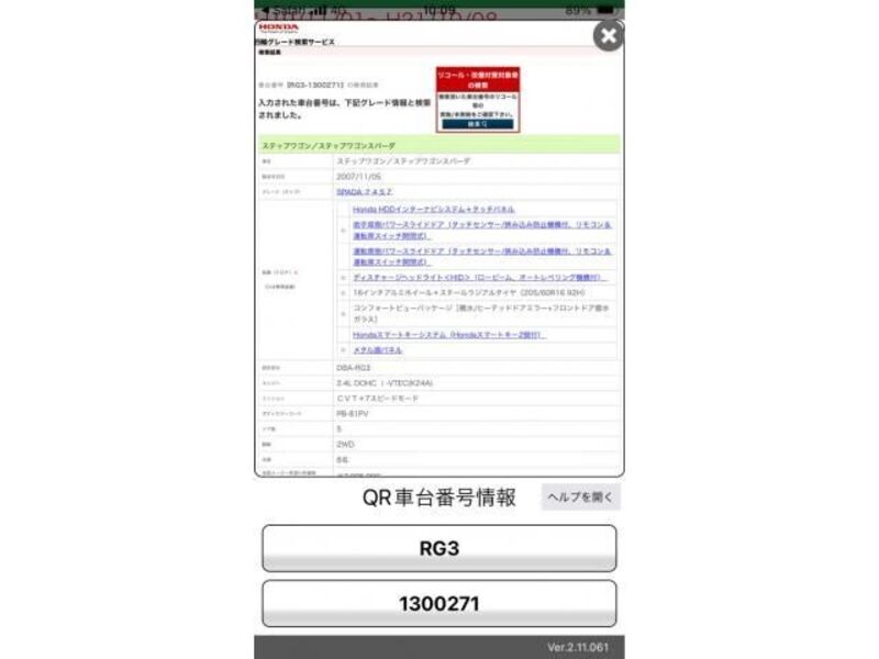 | Aina ya mwili | Van | Chasi hapana | RK5-102**** | Nambari ya mfano | RK5カイ | Mfano wa injini | -- | Usimamizi | Haki |