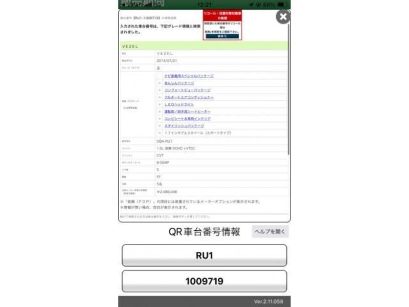 hii 2014 HONDA VEZEL na nambari ya mfano RU1 imewekwa na injini ya Petroli 1,500cc na ina jumla ya mileage ya 132,930km.