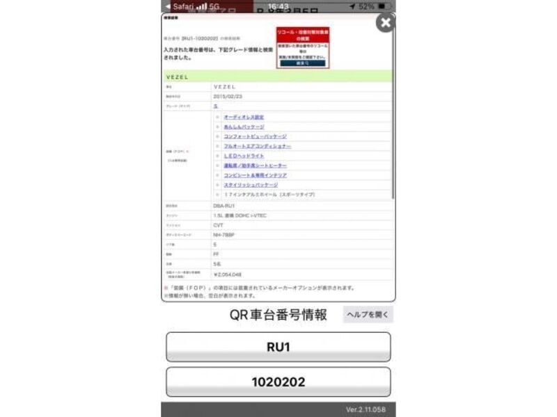 2015 huko HONDA VEZEL RU1