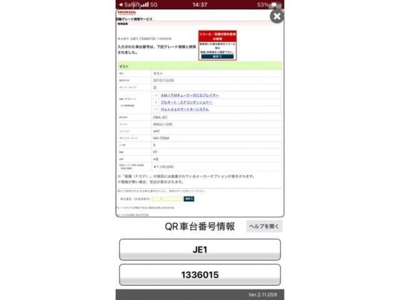 | Chassis No | JE1-133****Full Chassis No_will be shown on Invoice |