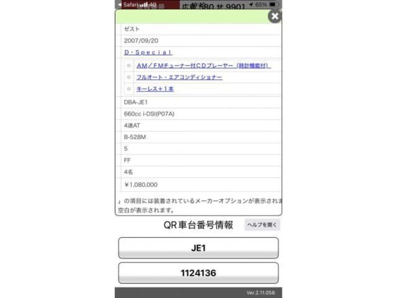 2007 huko HONDA ZEST JE1