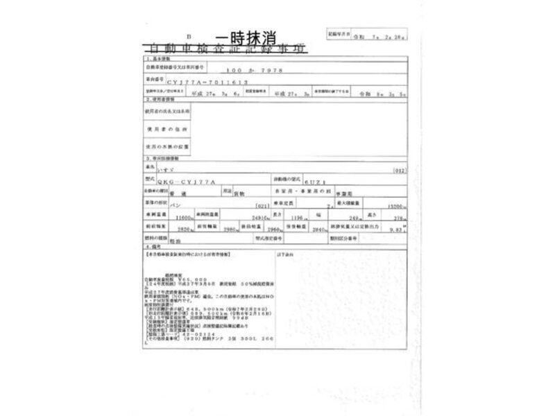 hii 2015 ISUZU GIGA na nambari ya mfano CYJ77A imewekwa na injini ya Dizeli 9,830cc na ina jumla ya mileage ya 765,723km.