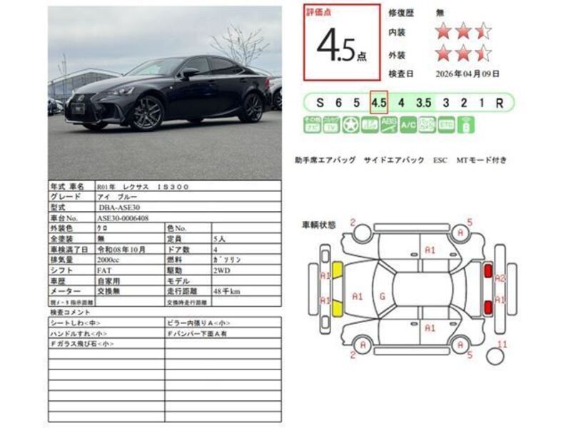 hii 2019 LEXUS IS na nambari ya mfano ASE30 imewekwa na injini ya Petroli 2,000cc na ina jumla ya mileage ya 48,320km.