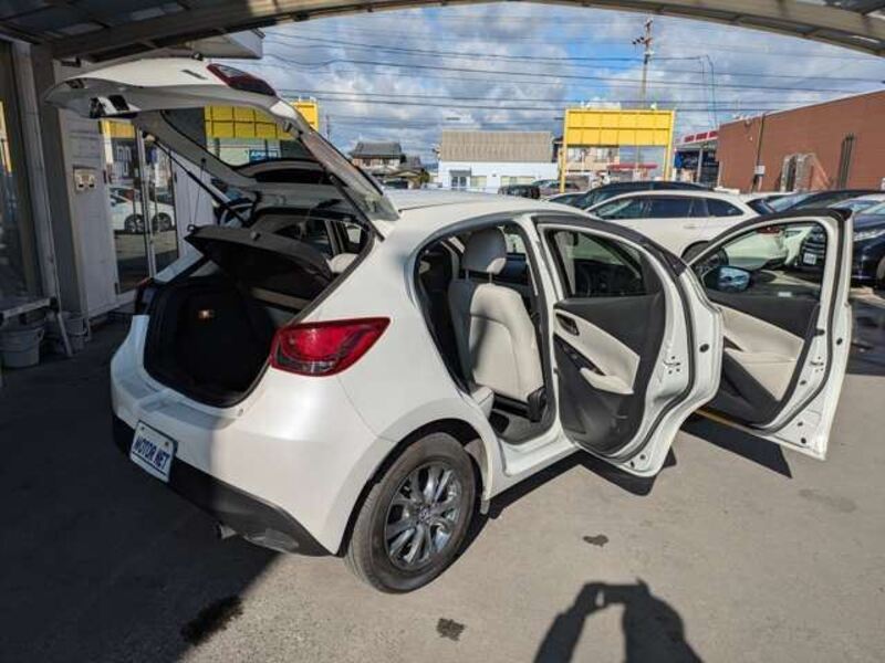 This is a compact hatchback Mazda. It has a bold design and offers high-class driving with its performance, accessories and other features. With its wide field of vision and well-designed switch locations make this vehicle easy to drive for long periods of time with a natural driving posture.
