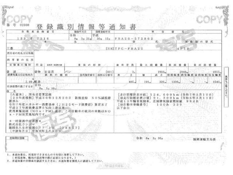 | Chassis No | FBA20-5****Full Chassis No_will be shown on Invoice |