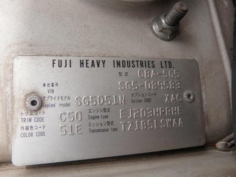 2005 huko SUBARU FORESTER SG5