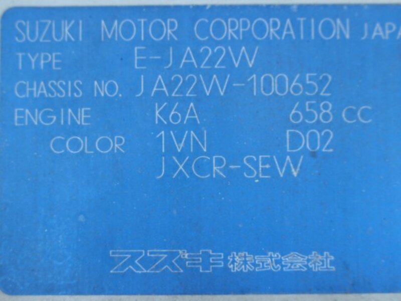 | Chassis No | JA22W-1****Full Chassis No_will be shown on Invoice |