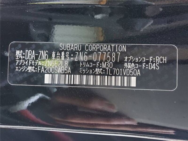 | Chassis No | ZN6-077****Full Chassis No_will be shown on Invoice |