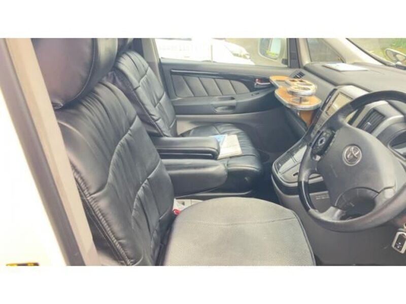 This is a Toyota 8-seat large minivan, seating up to seven (7) or eight (8) people. The interior offers ample room which provides luxurious relaxation. The step into the car is wide and low, which makes it easy to get in and out of the rear seats. The luggage space has ample space, and the seats can be re-arranged so that luggage can be stored.