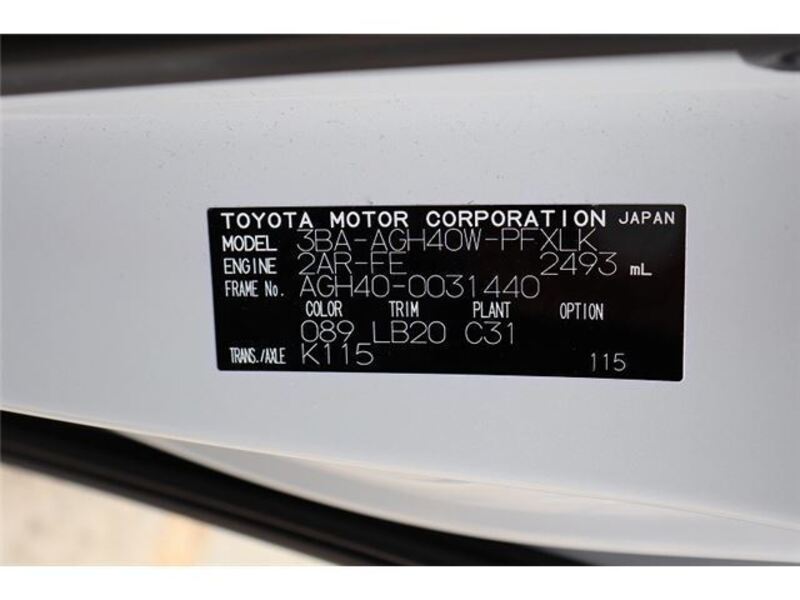 | Chassis No | AGH40-0****Full Chassis No_will be shown on Invoice |