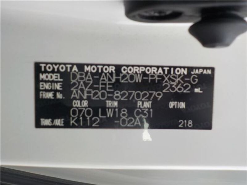 | Chassis No | ANH20-8****Full Chassis No_will be shown on Invoice |