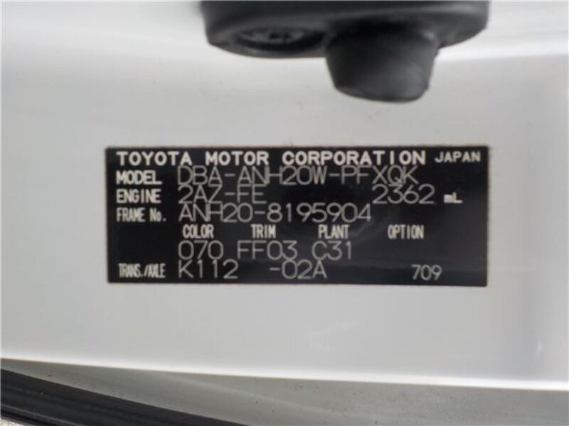| Chassis No | ANH20-8****Full Chassis No_will be shown on Invoice |