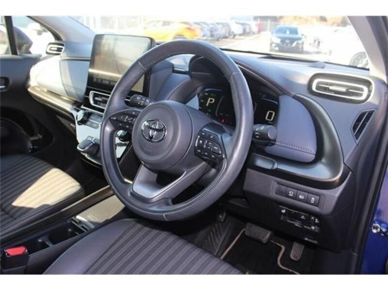 This is a compact Toyota hatchback. A combination of motor and engine power provides smooth acceleration, and the vehicle has agile cornering performance and the best fuel economy in a compact vehicle.