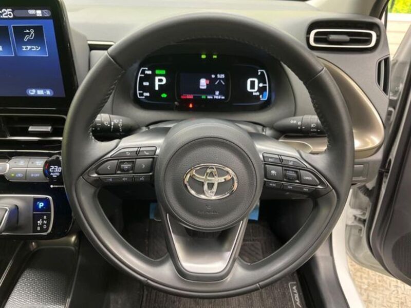 This is a compact Toyota hatchback. A combination of motor and engine power provides smooth acceleration, and the vehicle has agile cornering performance and the best fuel economy in a compact vehicle.